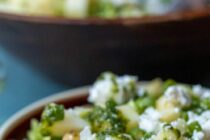 Layer everything in a large bowl with the feta cheese and scallions and then drizzle it with dressing when you serve it. I wouldn’t pre-dress this salad.